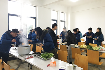 春節前(qian)最后一天,我們在(zai)食堂煮起了火鍋...
